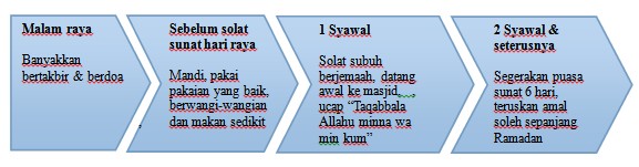 3) Banyakkan bertakbir. Tempoh bertakbir bermula daripada lepas solat fardhu Maghrib pada malam raya sehingga bermulanya solat sunat hari raya.